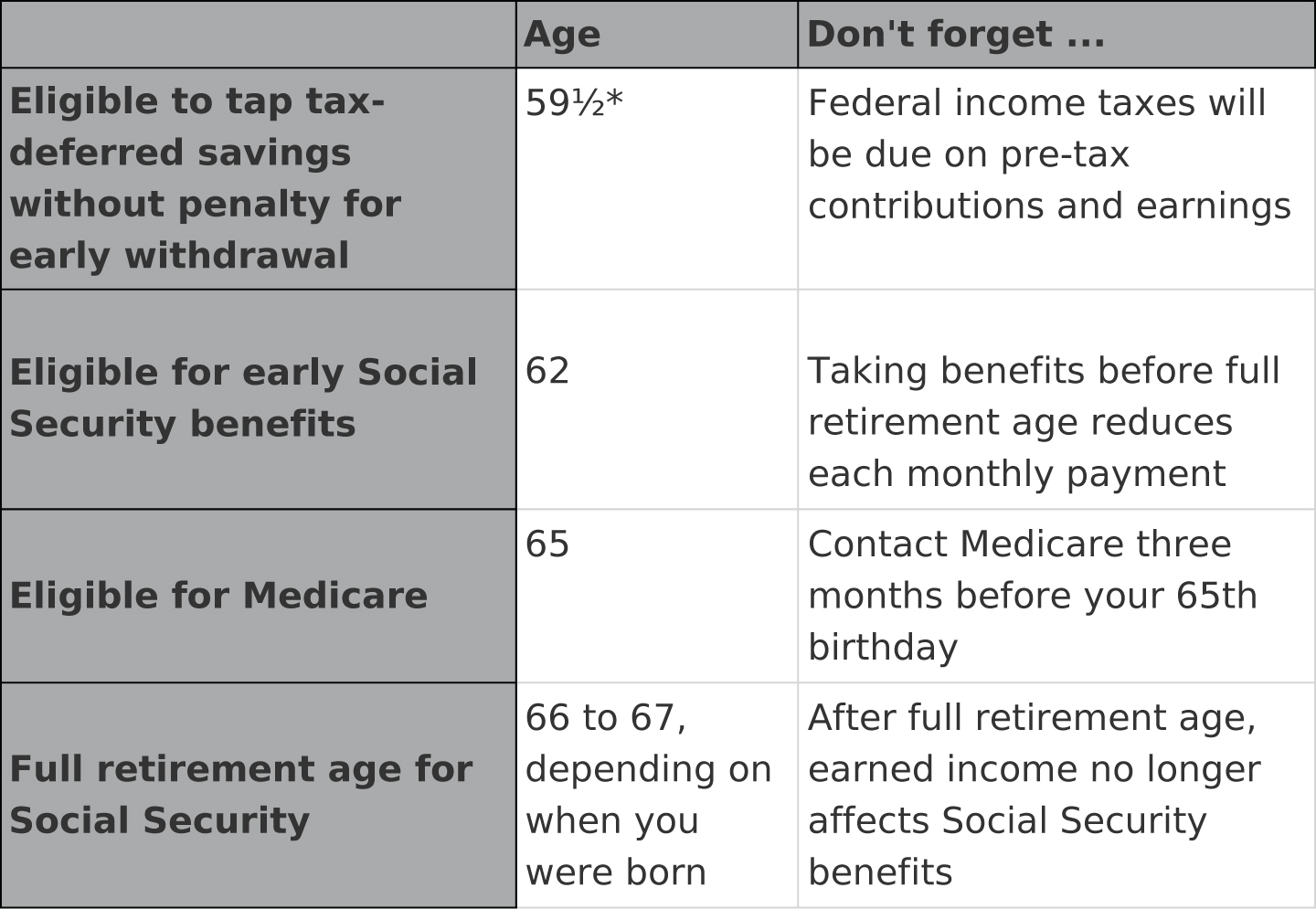 Also, don't forget that if you hope to retire before you turn 59½ and plan to start using your 401(k) or IRA savings right away, you'll generally pay a 10% early-withdrawal penalty plus any regular income tax due [with some exceptions, including disability payments and distributions from employer plans such as 401(k)s after you reach age 55 and terminate employment].