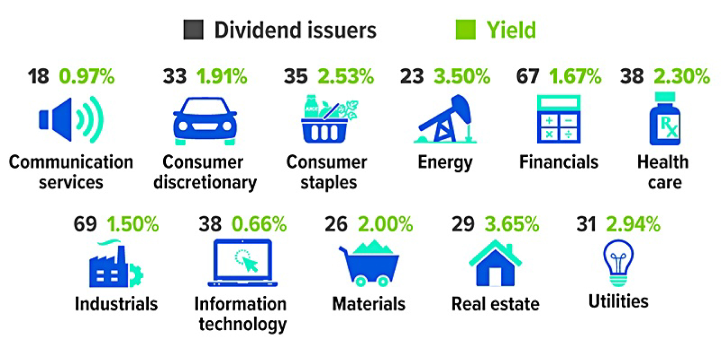 At the end of Q2 2025, there were 407 dividend-paying companies in the S&P 500 Index, with yields averaging 1.51%. However, the number of dividend issuers and yields varied significantly by sector.