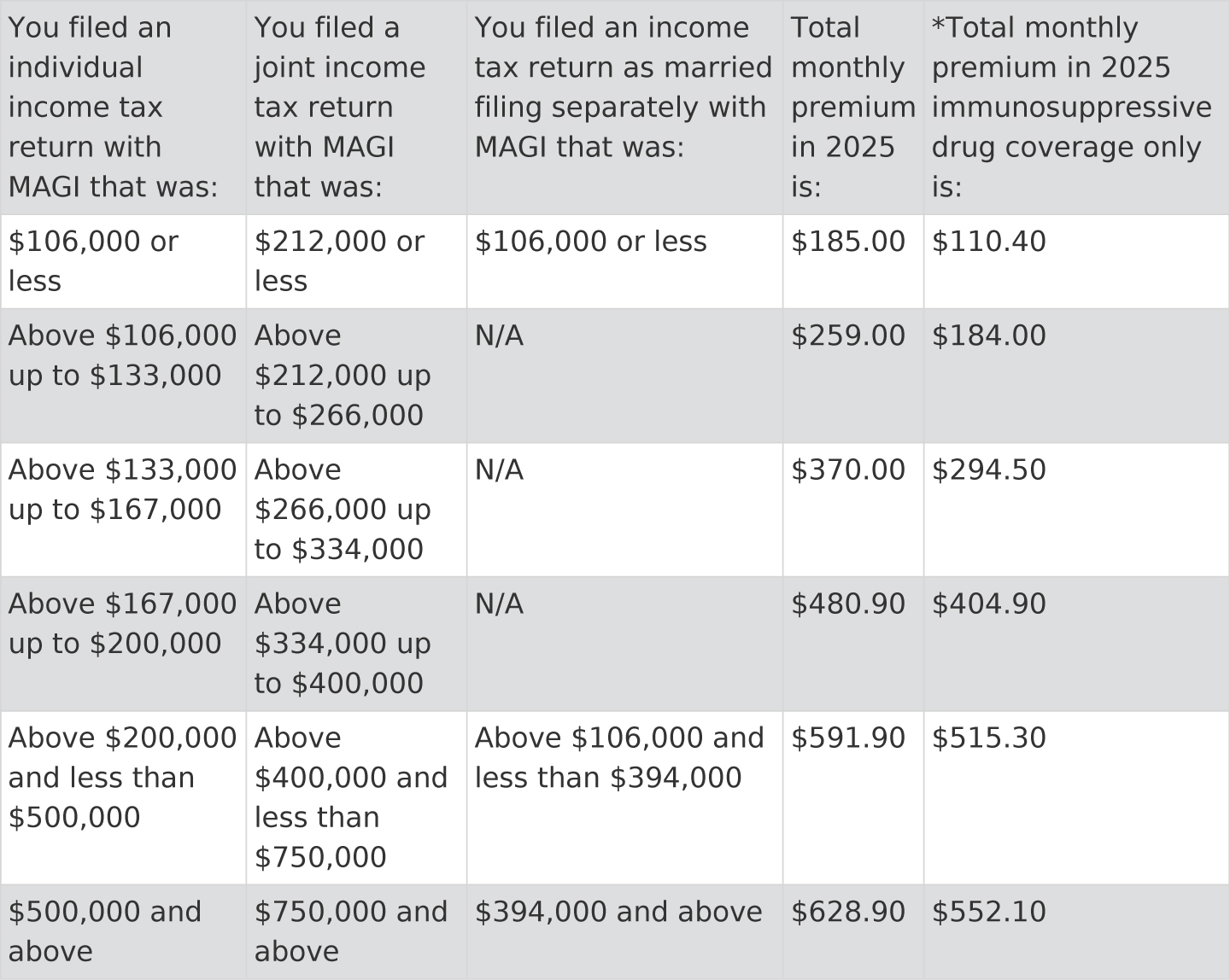 To determine if you're subject to income-related premiums, the SSA uses the most recent federal tax return provided by the IRS. Generally, the tax return you filed in 2024 (based on 2023 income) will be used to determine if you will pay an income